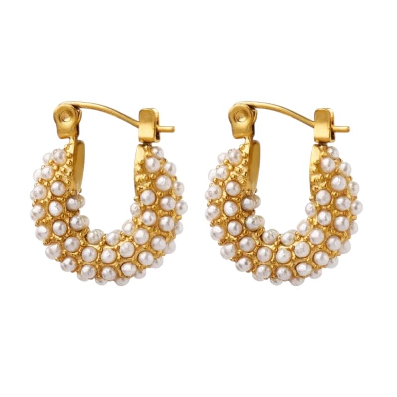 Elegante LA FREJA Ohrringe aus hochwertigem Edelstahl, veredelt mit einer 18-Karat-Vergoldung und verziert mit zarten Perlen. Das zeitlose Design macht diese Ohrringe zu einem perfekten Accessoire für jeden Anlass – klassisch und modern zugleich. Dieses Produkt gehört zum limitierten Modeschmuck-Sortiment, bietet ein 14-tägiges Rückgaberecht und unterliegt speziellen Garantiebedingungen.