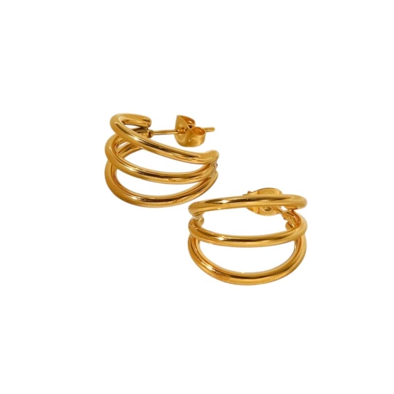 Elegante LA FREJA Creolen in C-Form, gefertigt aus hochwertigem Edelstahl und veredelt mit einer Vergoldung. Das moderne Design macht diese Ohrringe zu einem stilvollen und vielseitigen Accessoire für jeden Anlass. Dieses Produkt gehört zum limitierten Modeschmuck-Sortiment, bietet ein 14-tägiges Rückgaberecht und unterliegt speziellen Garantiebedingungen.